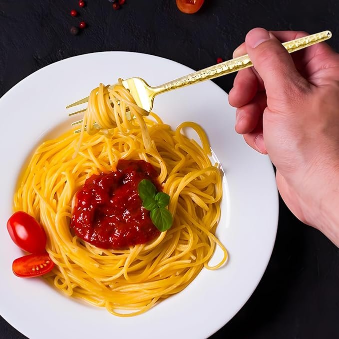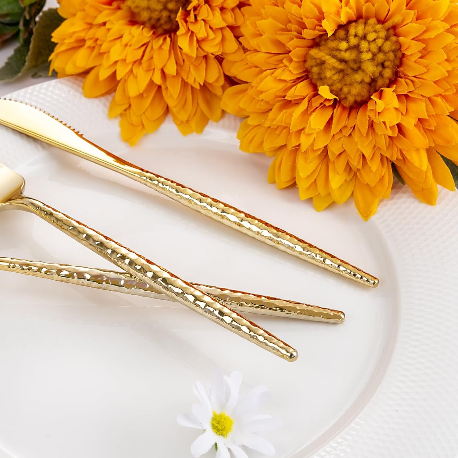 - Metallic texture – hammer pattern design: Elegant, exquisite, shiny, looks like real gold silverware, perfect for all occasions, weddings, Thanksgiving, Christmas, anniversaries, and family reunions.