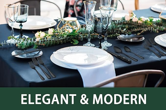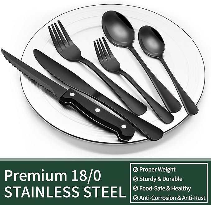 - COMFORTABLE DESIGN: This flatware set has a classic silhouette with clean lines and polish-finish surface in all black, a good choice to go with your existing tableware. The smooth edge of the handle is pleasure to hold, appropriate weight and perfect balance are added to ensure maximum comfort during use.