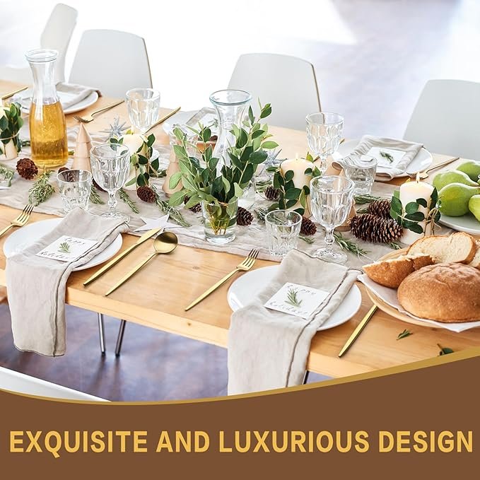 • PREMIUM 30-PIECE GOLD SILVERWARE SET FOR 6: This flatware set contains 6 dinner forks, 6 salad forks, 6 dinner spoons, 6 tea spoons, 6 dinner knives. It’s the ideal set for home daily use, and also for restaurants, pubs, cafes, and hotels. This cutlery set also help your dinner full of design while having a party.