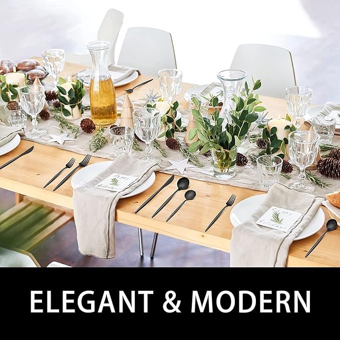 - COMFORTABLE DESIGN: This matte flatware set has a classic silhouette with clean lines and polish-finish surface, a good choice to go with your existing tableware. The smooth edge of the handle is pleasure to hold, appropriate weight and perfect balance are added to ensure maximum comfort during use.