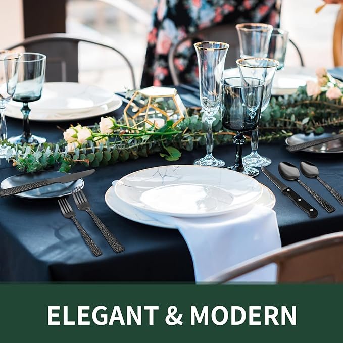 - COMFORTABLE DESIGN: This flatware set has a classic silhouette with clean lines and polish-finish surface in all black, a good choice to go with your existing tableware. The smooth edge of the handle is pleasure to hold, appropriate weight and perfect balance are added to ensure maximum comfort during use.