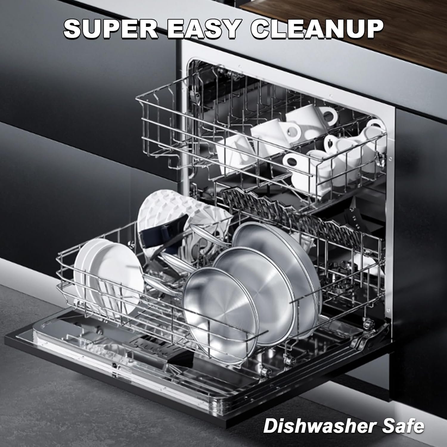 - DURABLE & SLEEK DESIGN: Each piece designed with durability and a sleek mirror finish exterior that is dishwasher-safe for added convenience and also have you cooking your absolute best. Enables the body to withstand a high temperature of up to 500°F. The sturdy hollow handle design reduces heat transfer.